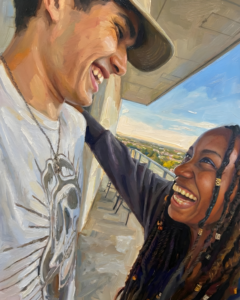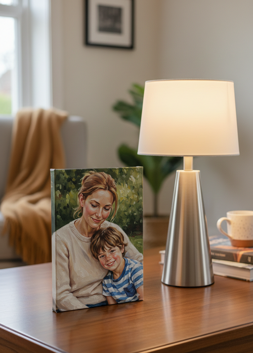 See how we transform your cherished photos into stunning commissioned digital artwork. Drag the slider to reveal the before and after.